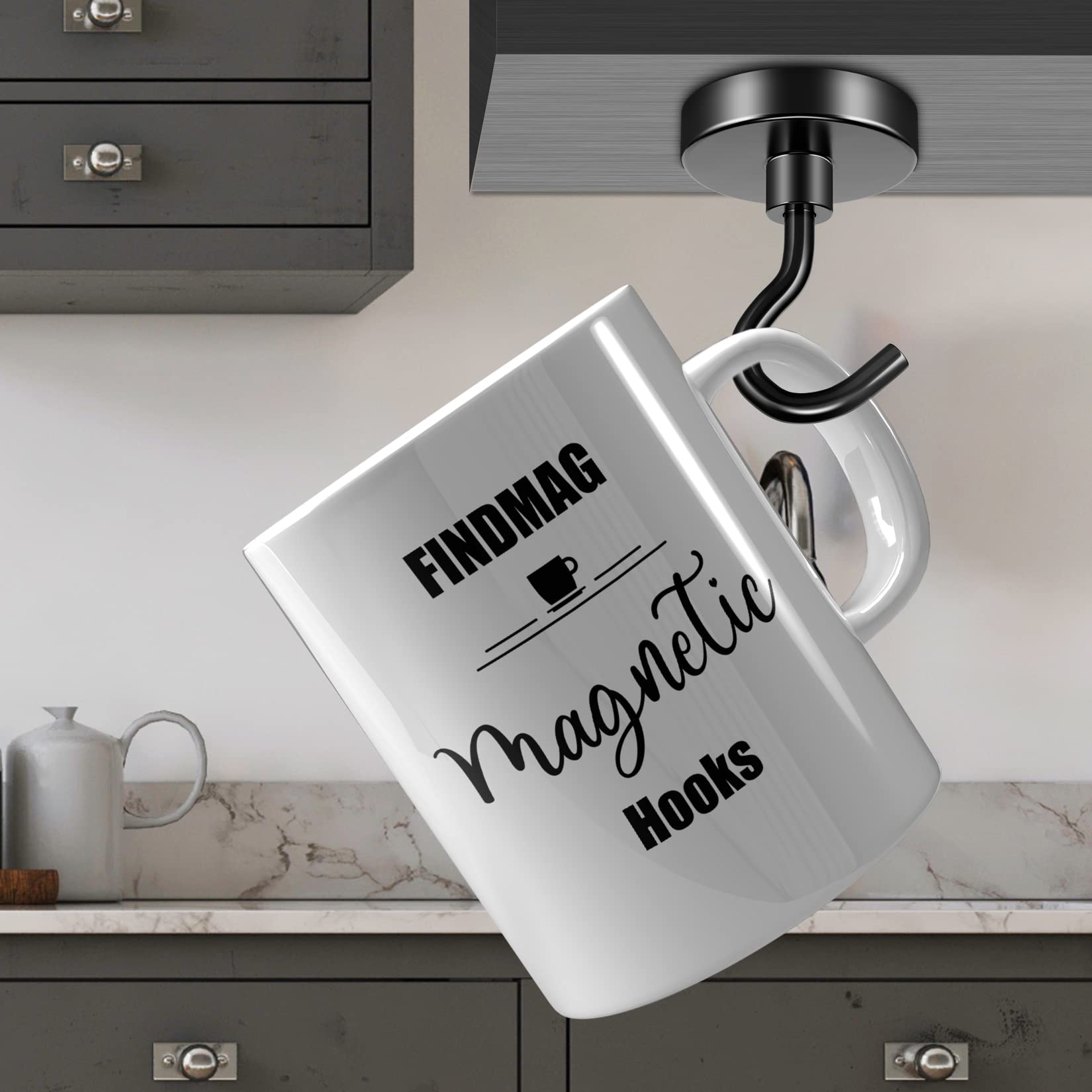 FINDMAG 6 Pack 80LBS Heavy Duty Magnetic Hooks Neodymium Magnet Hook for Hanging, Strong Magnetic Hooks Magnet with Hooks for Refrigerator, Grill, Kitchen, Key Holder