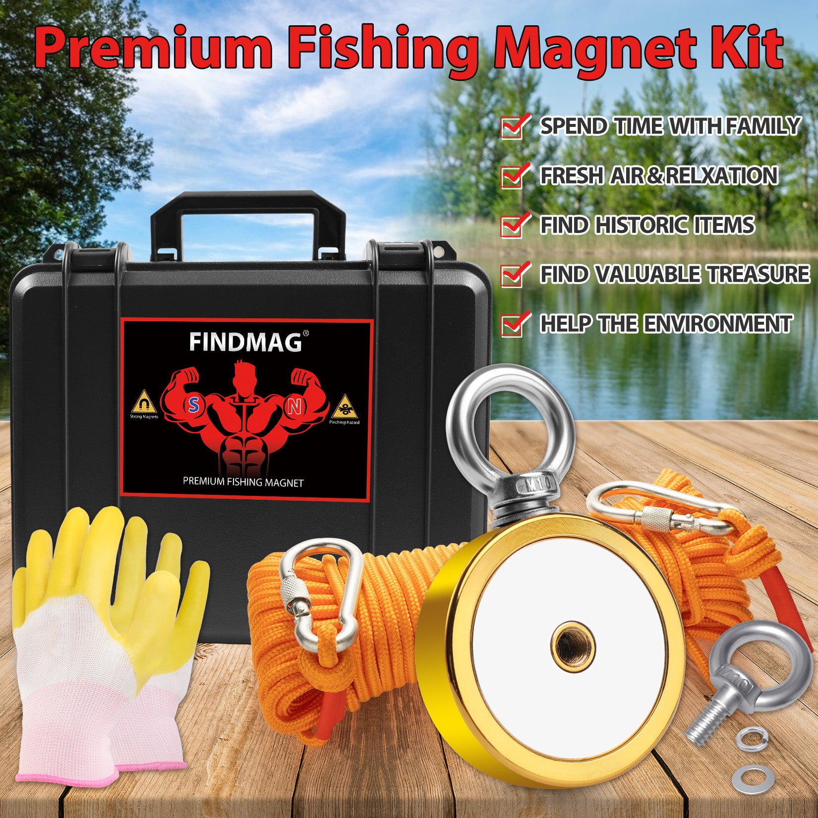 FINDMAG Double Sided Fishing Magnets 1000 lbs Pulling Force Fishing Magnet Kit with Case, 2.95" Diameter Magnet Fishing Kit Perfect for Retrieving Items and Magnetic Fishing