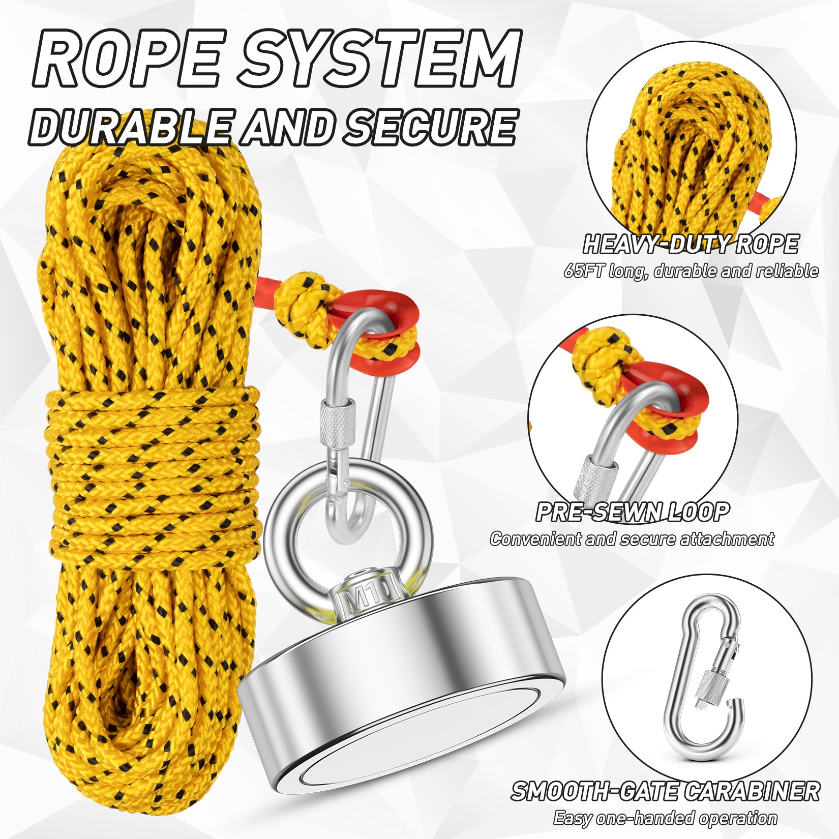 - ⚓Exceptional Pulling Power & Durability - Featuring a high-quality N52 grade neodymium magnet with a single-sided pulling force of over 1000lbs. The magnet measures 75mm x 20mm, and the steel core measures 60mm x 10mm, ensuring strong adhesion during underwater treasure hunts. It's built to withstand both freshwater and saltwater environments with ease.