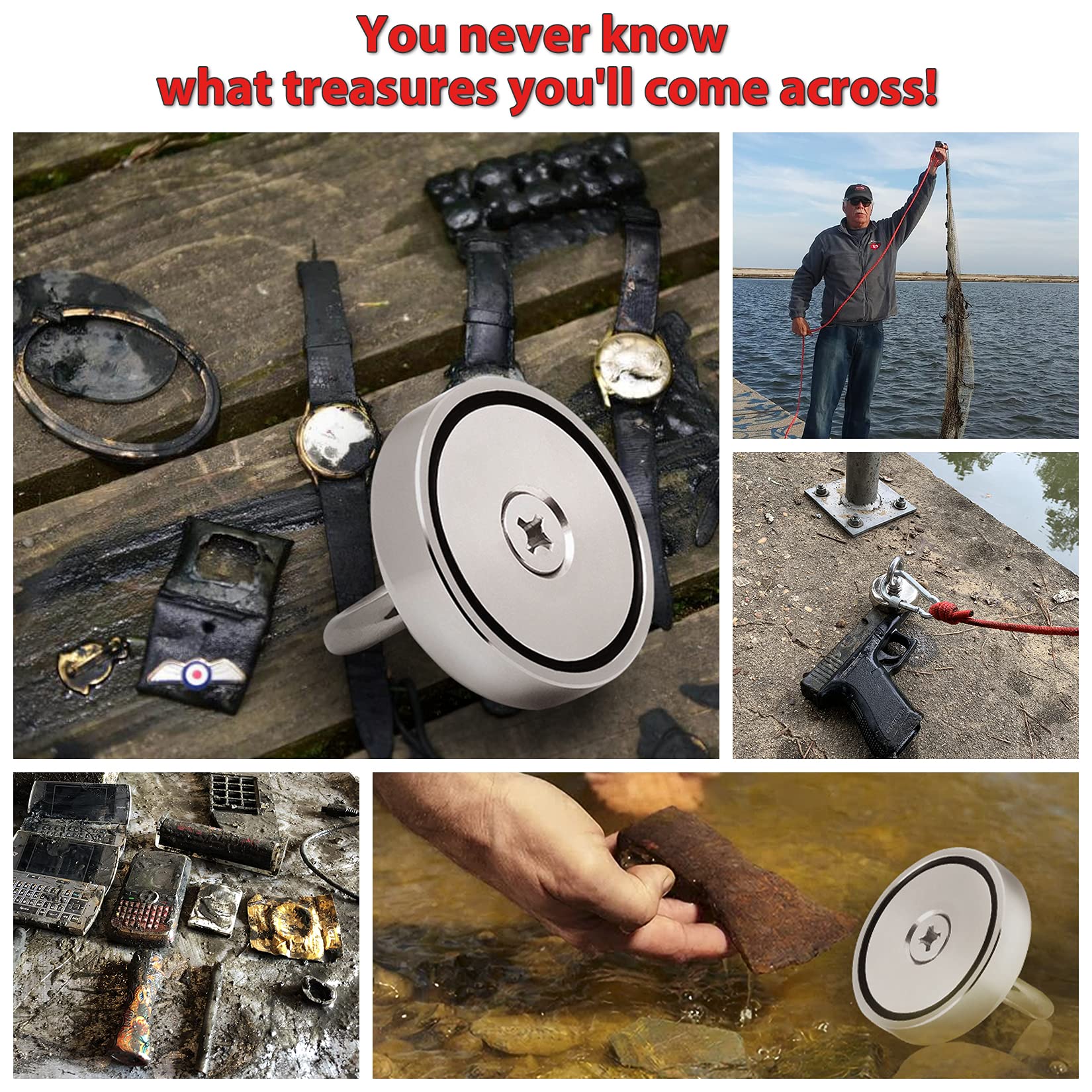 - STRONGEST N52 FISHING MAGNETS: This fishing magnet is ideal for fishing, lifting, hanging. Find lost treasures in rivers, wells or ponds. it'll pull up to 1500 lbs from under water