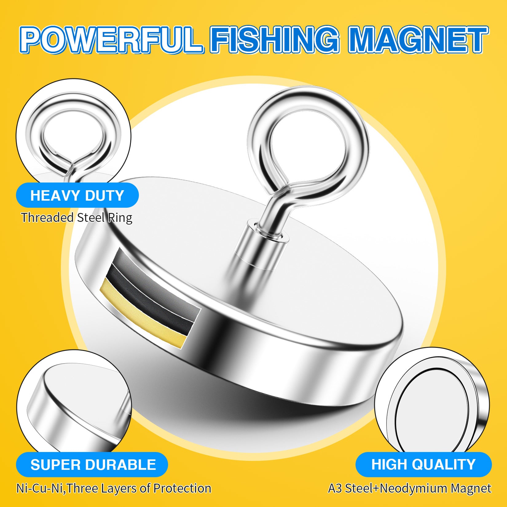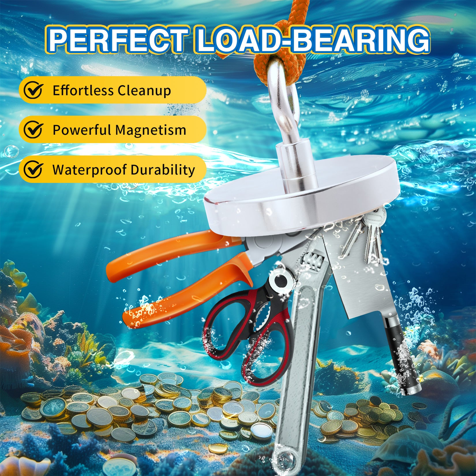 🌵【VERSATILE USE】 - This fishing magnet is ideal for fishing, lifting, hanging. Find lost treasures in rivers, wells or ponds. It’ll pull up to 1600 lbs from under water! You can also use it to collect nails, coin, hooks, screw, knife, or needles in sand beach, lawn, and house.